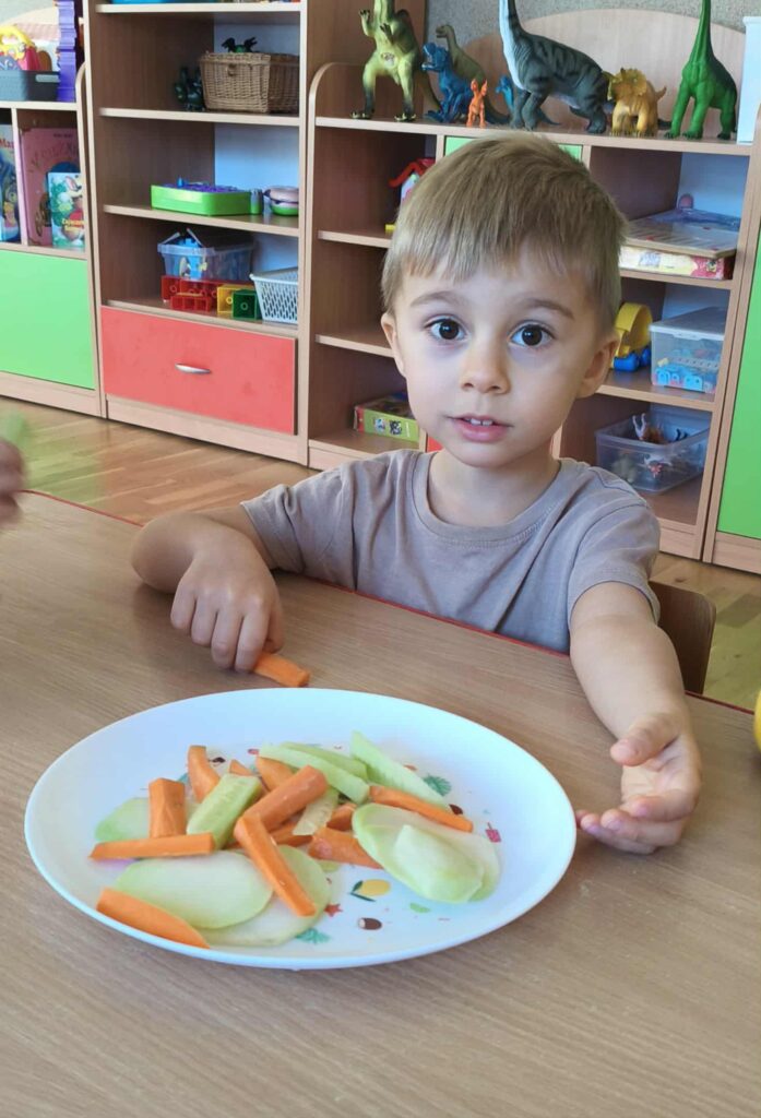 W listopadzie obchodziliśmy kilka dni poświęconych zdrowemu odżywianiu. Podczas Dnia Zdrowego Śniadania dzieci uczyły się, jak przygotować pełnowartościowe i kolorowe kanapki, poznając przy tym zasady komponowania zdrowego posiłku. Z kolei Dzień Zdrowego Gotowania był okazją do rozmów o witaminach, ich znaczeniu dla organizmu oraz o tym, dlaczego warto jeść dynię. Dzieci mogły własnoręcznie wydrążyć środek dyni, wyjmując zdrowe pestki, a następnie wziąć udział w dyniowym bingo. Najfajniejsze jedna było eksplozja dyni. Dzięki tej aktywności listopad stał się miesiącem pełnym smacznej nauki o zdrowych nawykach.